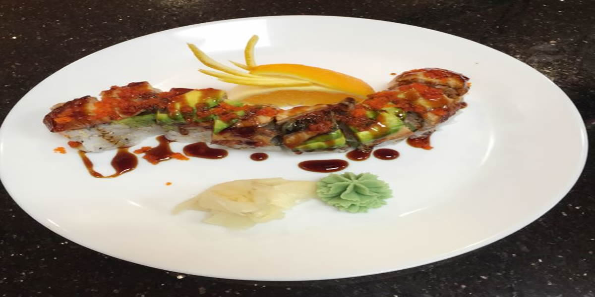 Excellent roll. Prepared with Crabmeat, cucumber & avocado inside, and topped with avocado, eel, and masago in special sauce
